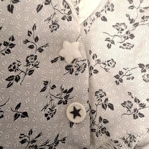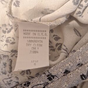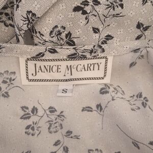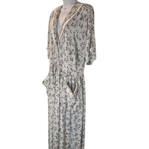 1940s silhouette vintage 90s Janice McCarty black white floral print dress. Known for her retro style, mis matched, playful buttons and patched baggy pockets, Deep V neck, dolman short sleeves, dropped waist, tie back , long full skirt. generous size S can easily fit M. Measures flat approx 22" pit to pit and 52" long. 100% flowy, rayon in excellent condition
