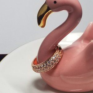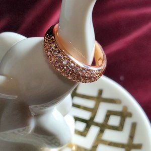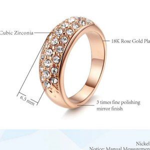 Janice Pave Wedding Band with AAA CZ Diamonds. Striking band with sparkling AAA Austrian Stellux CZ Diamond. 18K Rose Gold plating on solid Copper. Nickel free. Anti-allergy. Lots of sparkle and class. This ring pairs beautifully with the Clementine pave & solitare ring listed separately but shown together here.