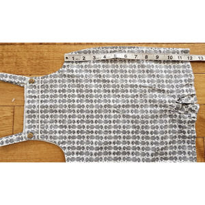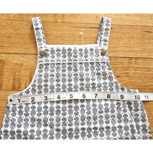 Very cute lightweight summer shorts romper / jumpsuit for baby boys with and all over pineapple print. Has four accent buttons (2 not pictured, they are used to lengthen the straps and overall length of the garment) on the front and two pockets on the back. Features a pullover snap button closure.