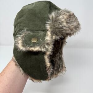 Janie And Jack Green Baby Faux Fur Corduroy Trapper Hat Size 6-12 Months
