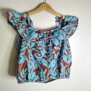 Janie And Jack Blue Brown Palm Tree Sleeveless Blouse Sz 12