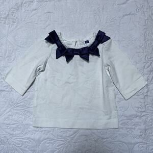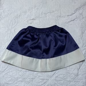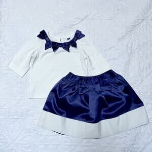 Janie and Jack two piece baby outfit. Includes navy and white satin like bow skirt with coordinating top. Skirt is very good condition, top has light mark on front (see photo). Size 6-12 months.