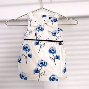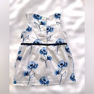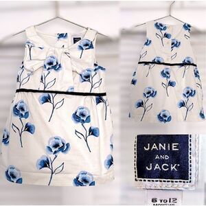 Janie And Jack Dress French Blue Floral Shift w/Bow Neck 6-12 Months