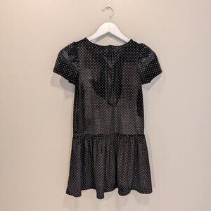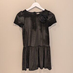 Janie And Jack Girls Black And Gold Polka-Dot Velvet Dress With Flower - Size 10