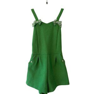 Janie And Jack Green Quilted Gingham Bow Romper Girls Size 8T