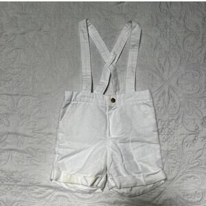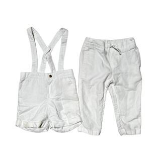 Janie and Jack bundle of linen / cotton blend white pants and Suspender shorts. Classic spring and summer fabric. Both are play condition for multiple stains. Size 12-18 months.