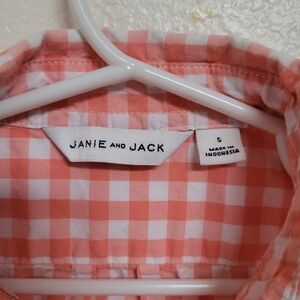 Janie and Jack Orange And White Checked Button Down Short Sleeve Shirt
