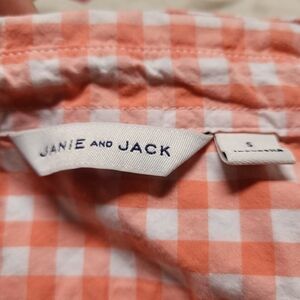 Janie And Jack Orange And White Checked Button Down Short Sleeve Shirt