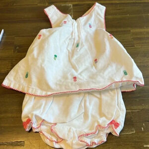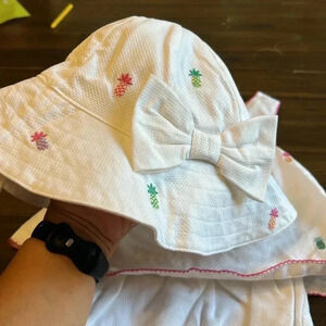 Janie And Jack Pineapple Set Hat embroidered Bloomers Pink White Tropical
