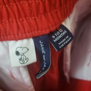 Janie And Jack Red Kids Shorts with Embroidered Snoopy Print Size 6-12mo