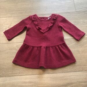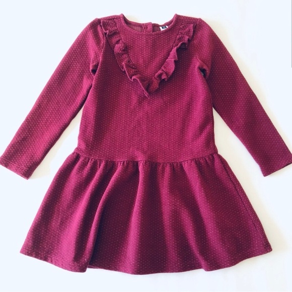Janie And Jack Ruffle Maroon Holiday Dress Long Sleeve Size 3-6 Months