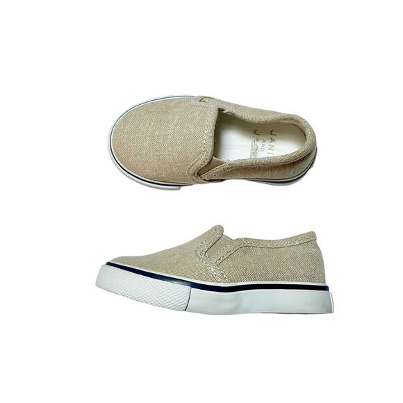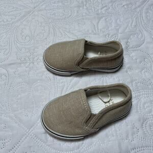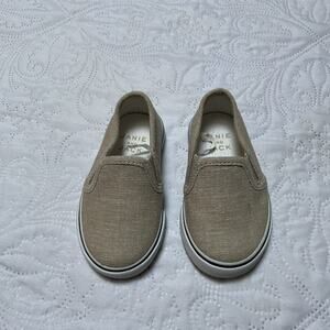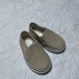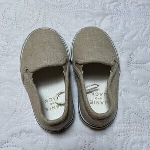 Janie and Jack slip on sneakers. Casual shoes in khaki canvas. Very good condition, minor wear. Size 5.