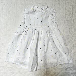 Janie and Jack sleeveless dress n white with ruffle collar and yellow and blue Swiss dot design. Very good condition. Size 18 months.