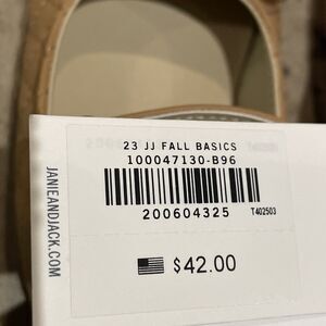 New with tags, tan brown, faux suede leather, quilted ballet flats with an ankle strap by Janie and Jack in a infant girl size 18-24 months. Bow accent on vamp. Gold tone metal buckle. In excellent unused condition.