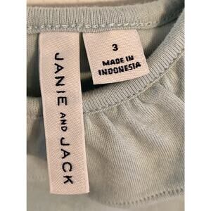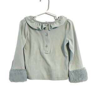 Janie and Jack light turquoise top with long sleeves and faux fur at the cuffs. Ruffle around the collar and 3 button close in the back.