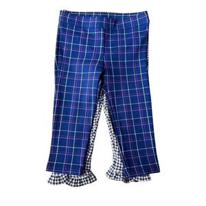 Navy blue with a white, pink, and red print plaid leggings. New without the tags.