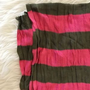Beautiful bright pink and olive green scarf made of a super soft fabric that has a crinkle appearance I used it as a thin scarf or head wrap excellent condition 68*12