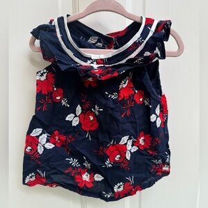 Janie & Jack 2T Blue Red & White Floral Girls Short Sleeve Blouse Top