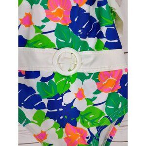 Janie & Jack Baby Girls Floral Swimsuit 6-12M With Ruffles & Belted Accent