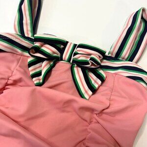 Janie & Jack Baby Girls One Piece Swimsuit 12-18 M Pink Bow Stripes Nautical