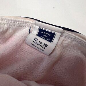 This stylish swimsuit from Janie & Jack features a charming pink design complemented by striped accents. Tailored for ages 12 to 18 months, it blends comfort with vibrant style, ensuring your little one stands out at the pool or beach. The bows and striped straps add a playful touch to this adorable swimwear.
