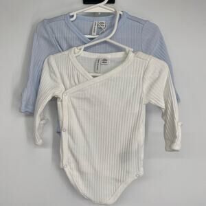 Janie & Jack Baby Pointelle Wrap Bodysuit 3-6 Month Blue & White Unisex