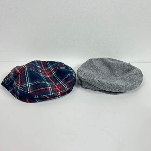 Janie & Jack Baby Toddler Wool Cabbie Hats Set of 2 Gray Red Plaid 12-24 Months
