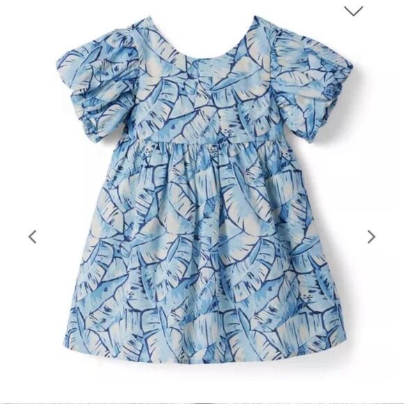 Janie & Jack Blue Palm Print Dress girls size 8 puff sleeve girlly tropical