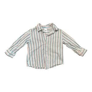 This Janie & Jack button-up shirt is in good used condition, showing no stains or rips. It features a delightful multicolor striped pattern, perfect for your little boy.