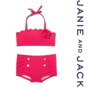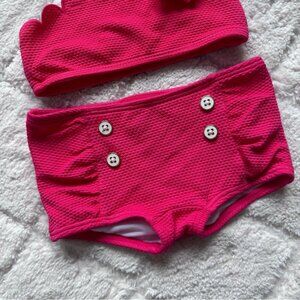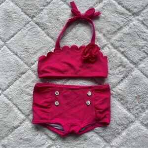 Janie + Jack | "Bright Pink" Scalloped Halter 2-Piece Swimsuit | Size 6-12 Month