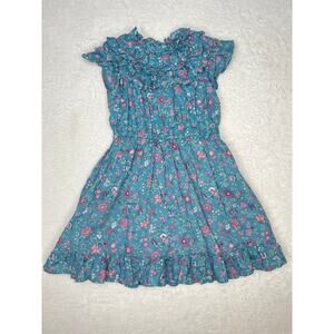 Janie & Jack Ditsy Indigo Floral Ruffle Dress Girls sz 4 Cotton Back to School