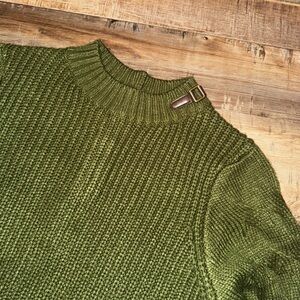 Janie & Jack Green Cableknit Puff Sleeve Size 12 Buckle Sweater Button Back