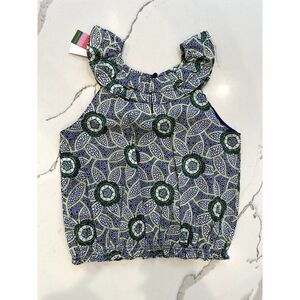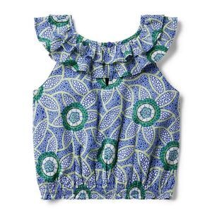 Janie & Jack NWT Kaavia James Floral Block Print Top in Blue/Green Size 14