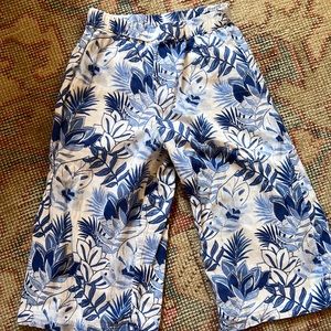 Janie & Jack Palm print cropped wide leg cotton muslin pant