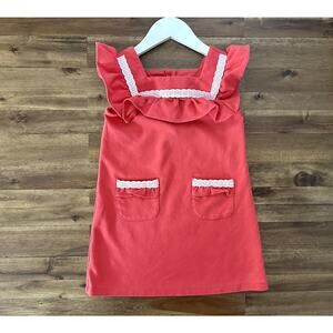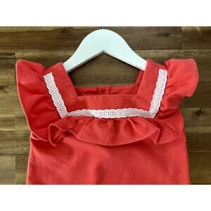 Janie & Jack Poppy Red Ruffle Eyelet Trim Ponte Knit Sleeveless Lace Dress 5