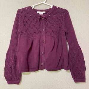 Janie & Jack Purple Puff Sleeve Button Front Cardigan Sweater 3