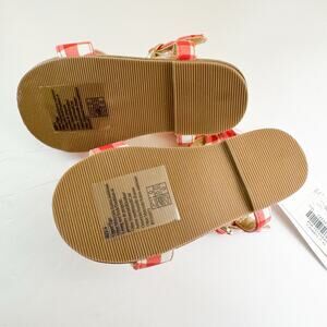 These Janie & Jack Red Gingham Flower Sandals in size 6T are perfect for toddler girls who love a casual and cute style. The red color and flower theme make them a great choice for the summer and spring seasons. Made with synthetic material and featuring moderate cushioning, these sandals are both fashionable and comfortable for little feet. The flat style and easy-to-wear design make them ideal for everyday wear. Add a touch of charm to your little one's summer wardrobe with these adorable sandals from Janie and Jack.