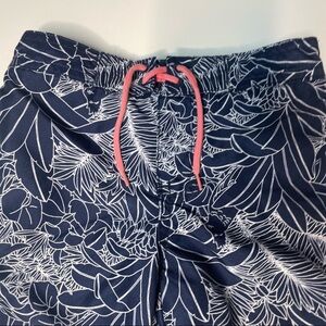 Janie & Jack Size 3 Boys Swim Trunks Navy Blue White Tropical