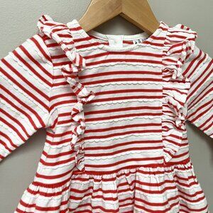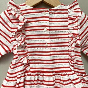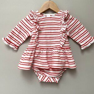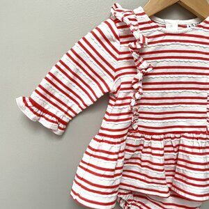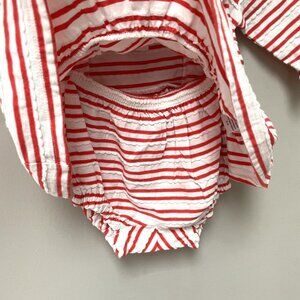 NWOT Janie and Jack white and bright red striped dress with bloomers. Ruffles down front and diaper cover bloomers. Buttons closure on back. Super cute! Size 12-18 months.