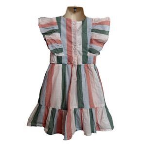 Janie & Jack Striped Ruffle Pink Blue Green Dress Size 3T