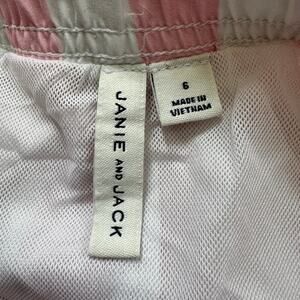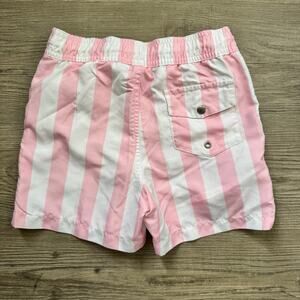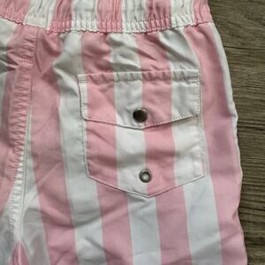 Janie & Jack Swim Boys Size 6 Striped White Pink Drawstring Pockets Summer Pool