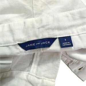 Clean and classic white linen cotton shorts from Janie and Jack. Zip fly with button closure; adjustable waistband; cuffed at the thigh; in-seam pockets.
