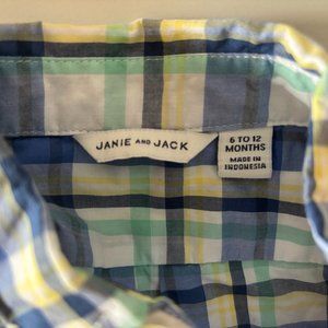 Janie & Jack baby boy plaid button down, worn once. size 6-12 months