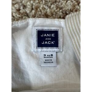 Janie & Jack baby overalls, shorts, 3-6 months, Tan & white; with Alligator. So Adorable!! Alligator stitched on. Fully lined, cotton fabric. In Excellent, pre-owned condition.