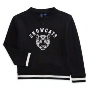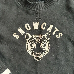 Janie & Jack snow cats sweatshirt. Black with white graphic and band stripe. Size 18-24 months. Gently used. Has piling (price reflects)