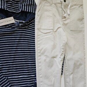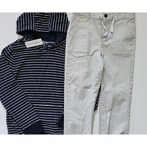 Janie and Jack 10 NWT Terry Striped Nay Pullover Hoodie Top Khaki Jogger