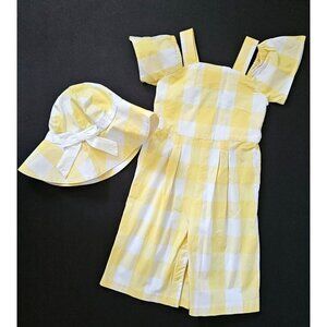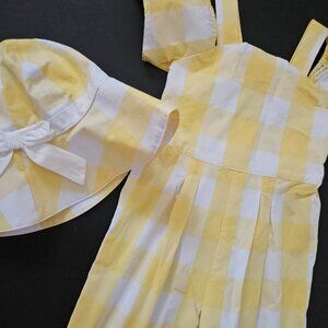 Janie and Jack 18-24 Sun Day Best Yellow PLaid Romper Hat Set