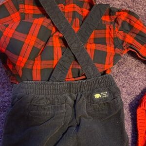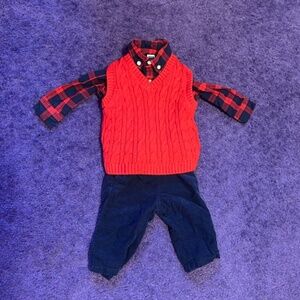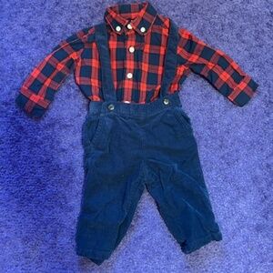 Janie and Jack 3 piece set - button up long sleeve shirt, overalls and vest - 3M