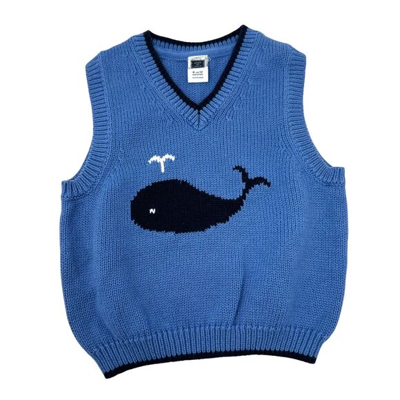 Janie and Jack Baby Blue and Black V-Neck Sweater Vest with Whale 6-2 Months