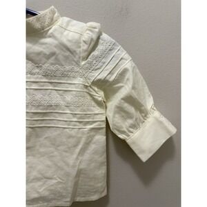 Adorable and classic baby girl blouse from Janie and Jack. This cream-colored long sleeve top features delicate pintuck pleats and lace accents across the chest and shoulders, giving it a vintage-inspired look. The back buttons make for easy dressing, and the soft cotton fabric ensures comfort. Perfect for special occasions, photos, or everyday wear.